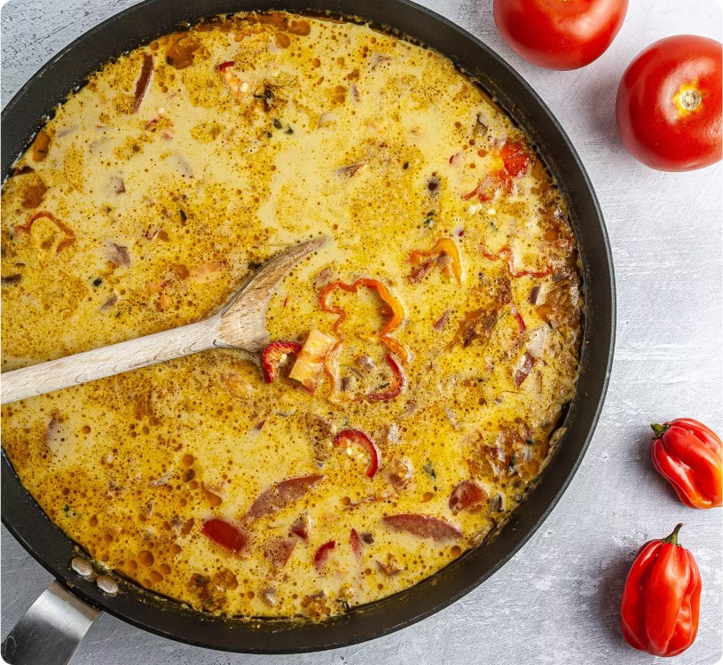 طعم های متضاد در این کاری چیزی است که آن را بسیار خاص می کند. شیر نارگیل خامه ای شیرینی موز را با طعم لطیف غذاهای دریایی میگو ترکیب می کند. سپس فلفل فوقالعاده تند را میخورید که سعی میکند با طعمهای آتشین جامائیکایی، ذائقههای شما را جلب کند.